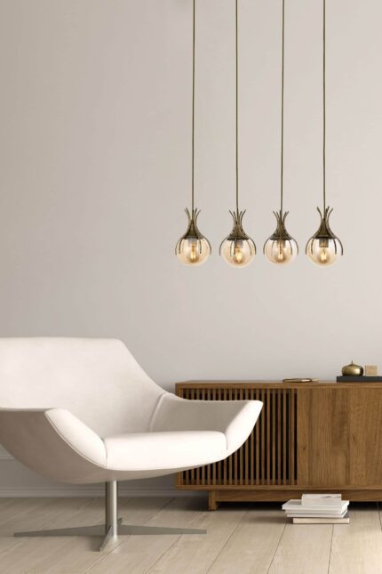 Produktnavn: AVONNI AV-60216-4ET Tumbled Finish Moderne Lysekrone E27 Metal Glas 40cm Varekode: AV-1781-4ET Familiekode: 1781 Kategori: Moderne lysekrone Højde: 90