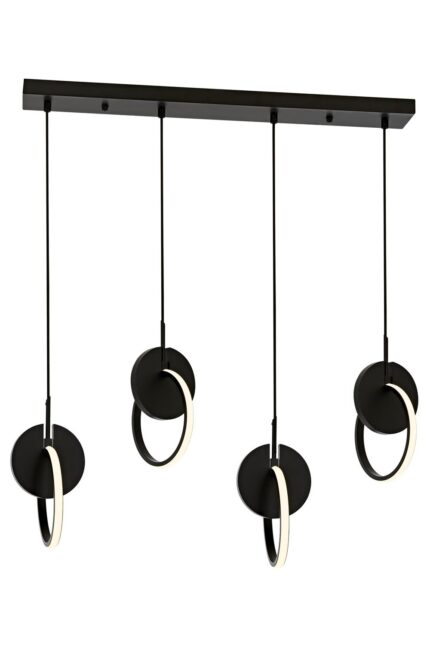 Produktnavn: AVONNI Sortmalet Moderne Lysekrone LED Metal Træ Plexi 80x12cm Produktkode: AV-1874-4Y-BSY Familiekode: 1874 Kategori: Moderne lysekrone Højde: 90 cm
