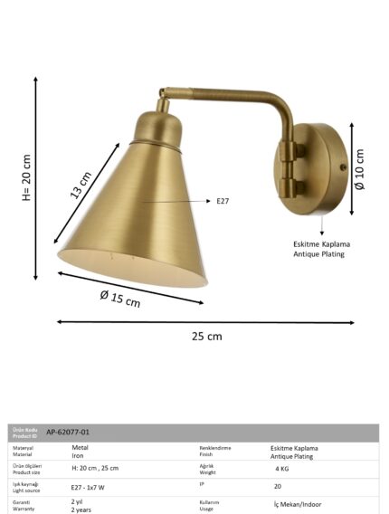 Produktnavn: AVONNI AP-60350-1EB Antik belægning væglampe E14 Metal Plexi 15cm Produktkode: AP-1861-1EB Familiekode: 1861 Kategori: Sconce Højde: 20 cm Diameter: