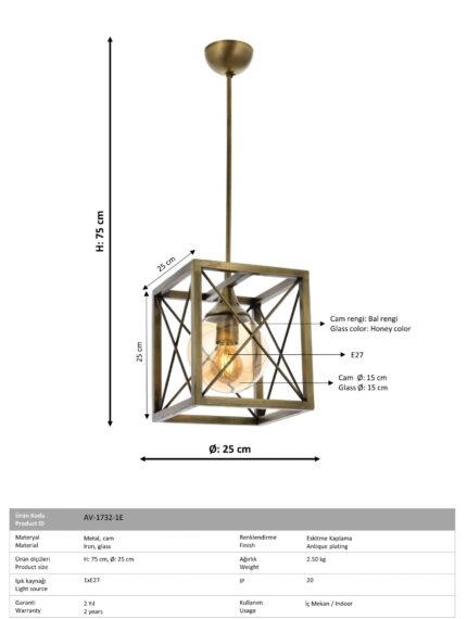 Produktnavn: AVONNI Moderne Lysekrone med antik finish E27 Metal 60x36cm Produktkode: AV-1836-4E-YM Familiekode: 1836 Kategori: Moderne lysekrone Højde: 70 cm