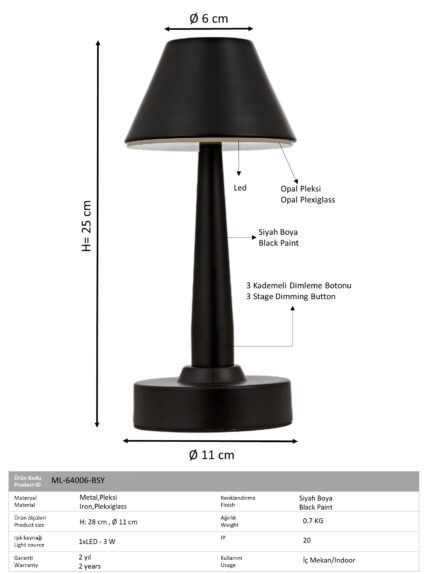 Produktnavn: AVONNI antikmalet bordlampe LED Metal Plexi 11cm Produktkode: ML-64005-EB Familiekode: 64005 Kategori: Bordlampe Højde: 25 cm Diameter: 11 cm