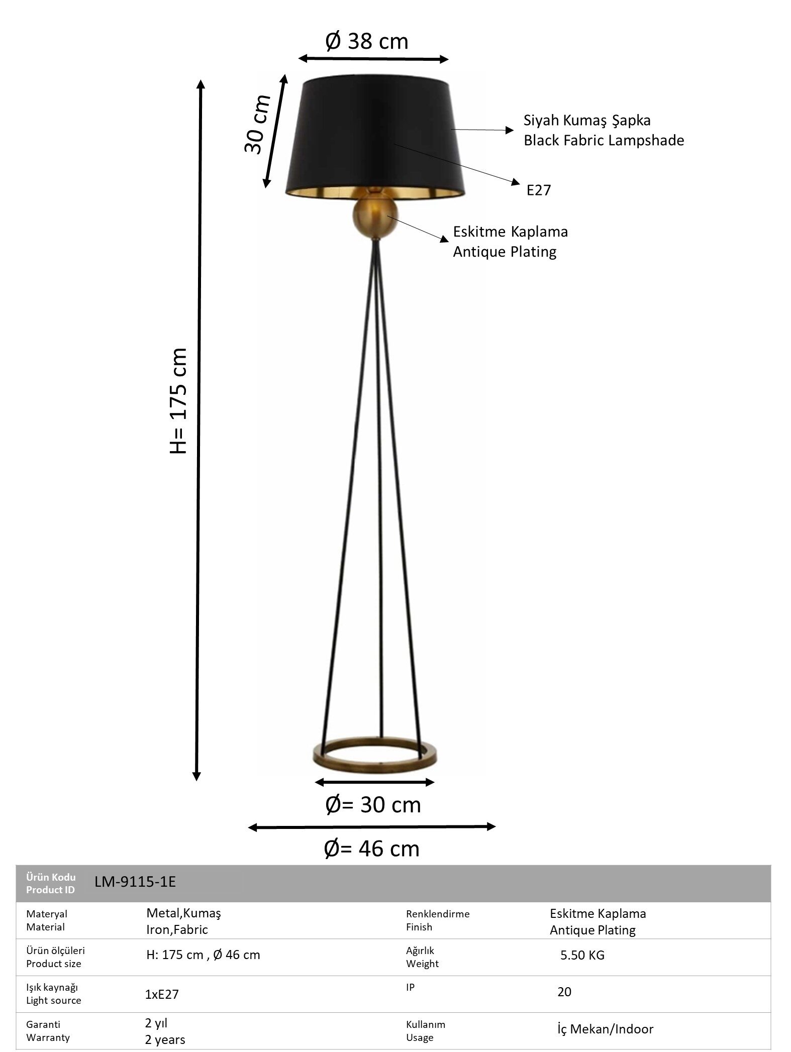 Produktnavn: AVONNI LM-9115-1E Tumbled Finer Gulvlampe E27 Metal Stof 46cm
