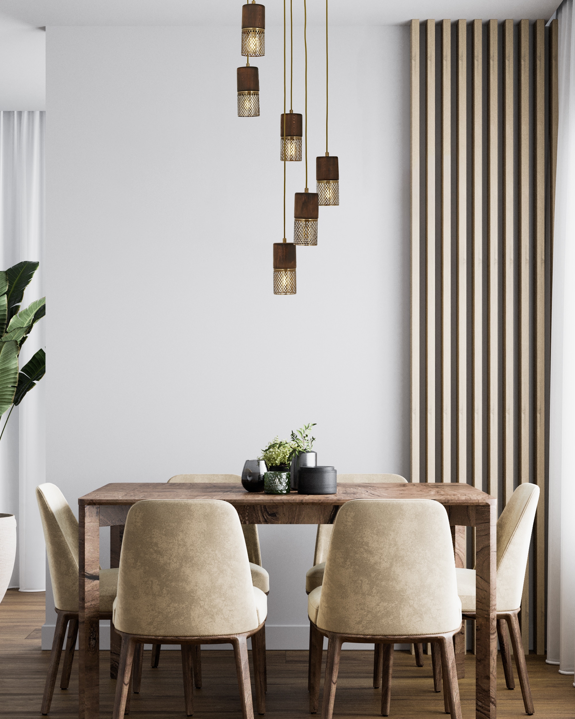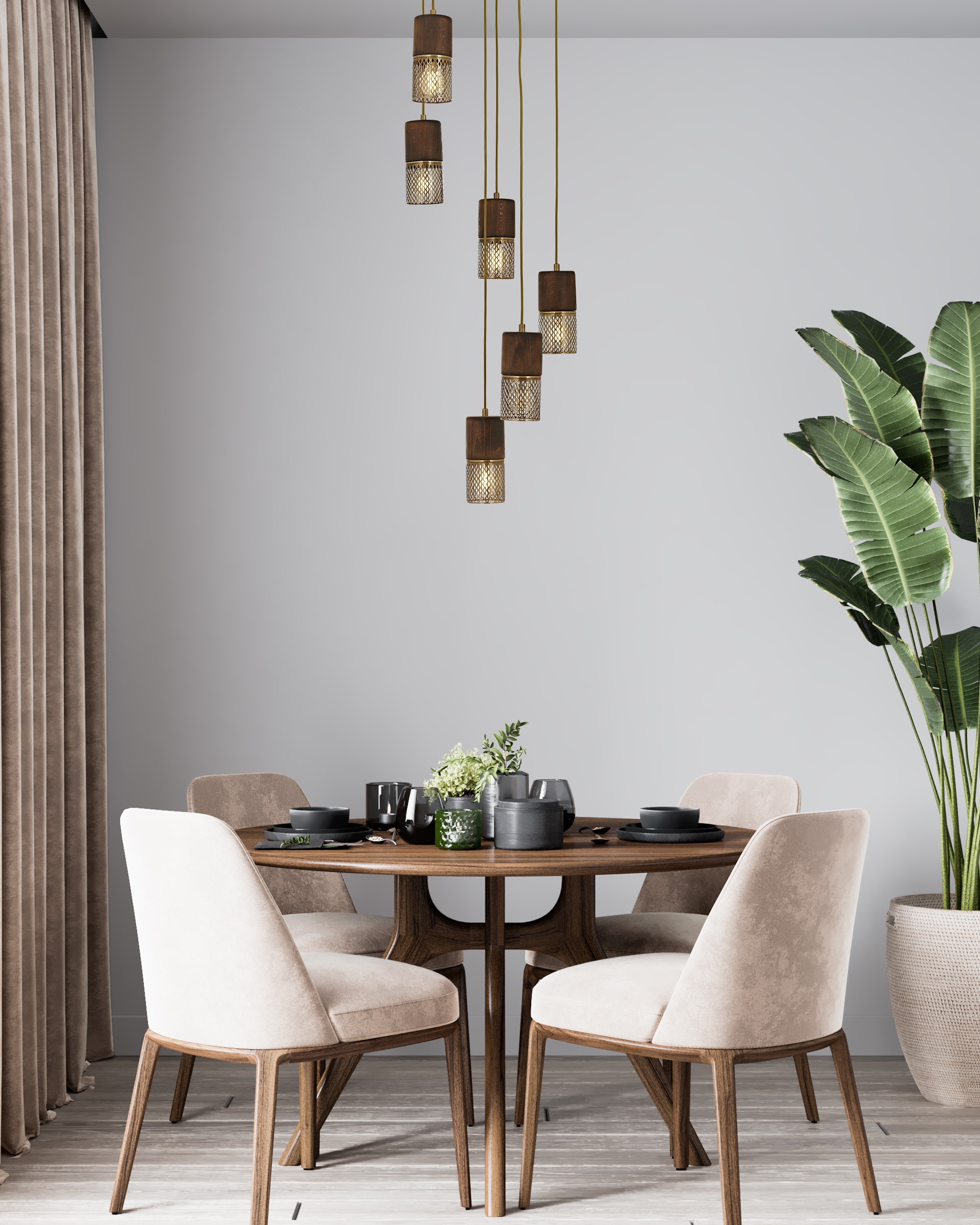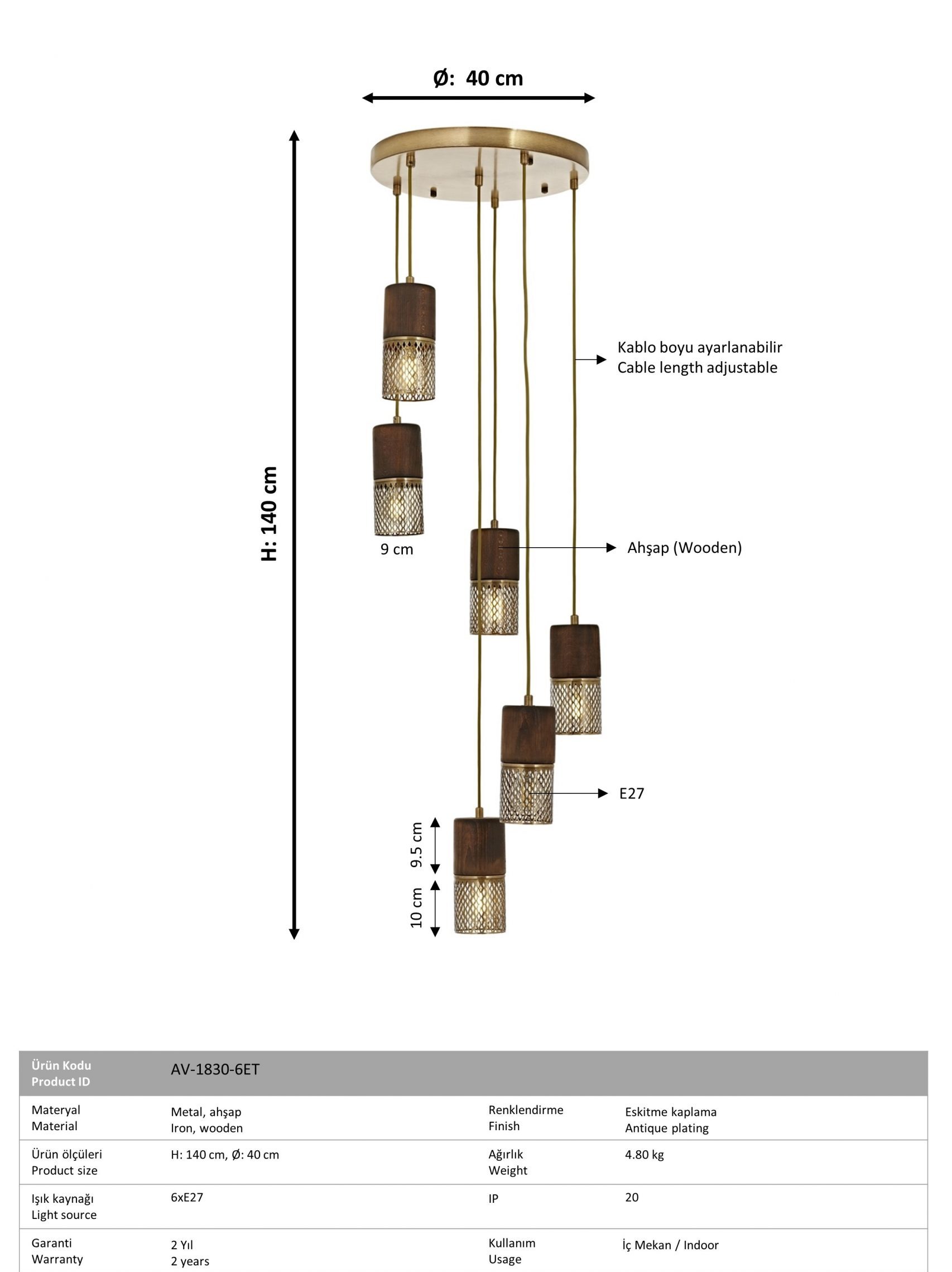 Produktnavn: AVONNI AV-60265-6ET Tumlet finer Moderne Lysekrone E27 Metal Træ 40cm